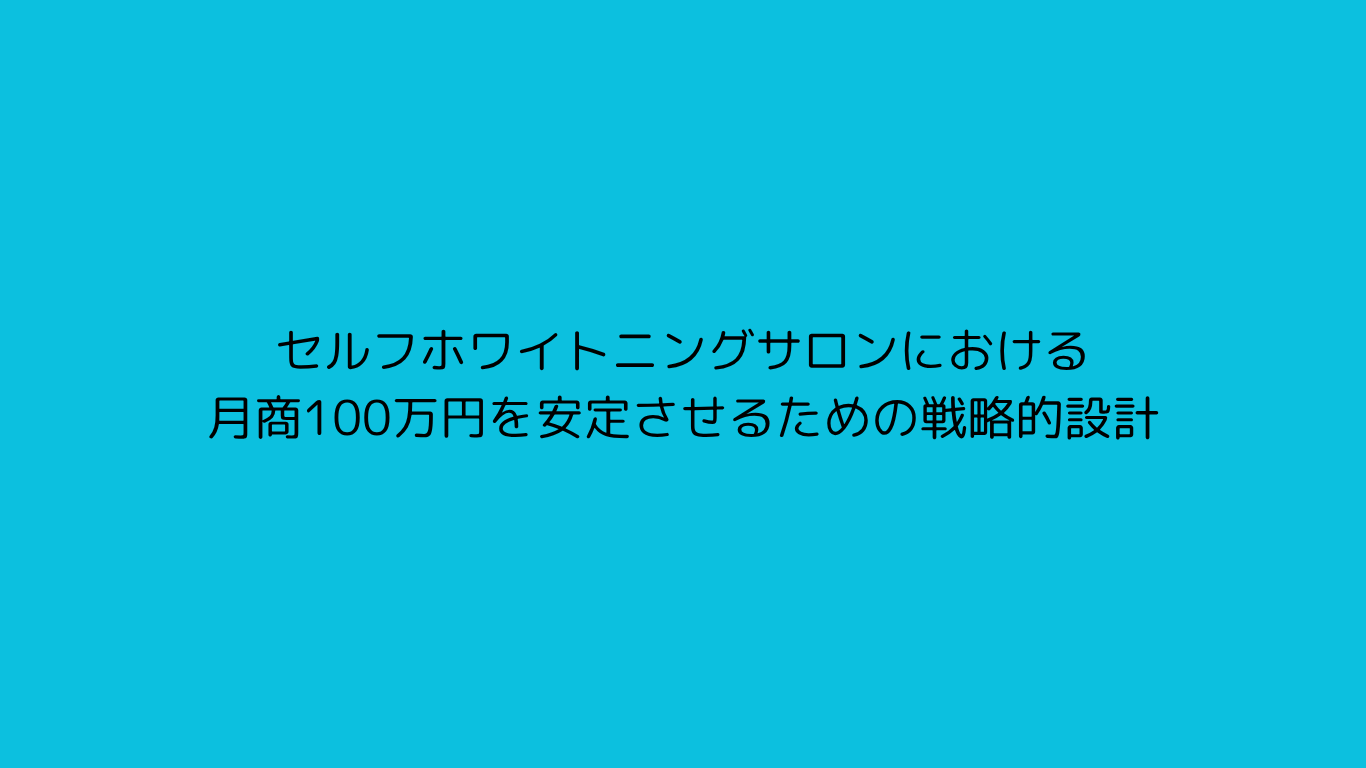 セルフホワイトニングサロンにおける月商100万円を安定させるための戦略的設計