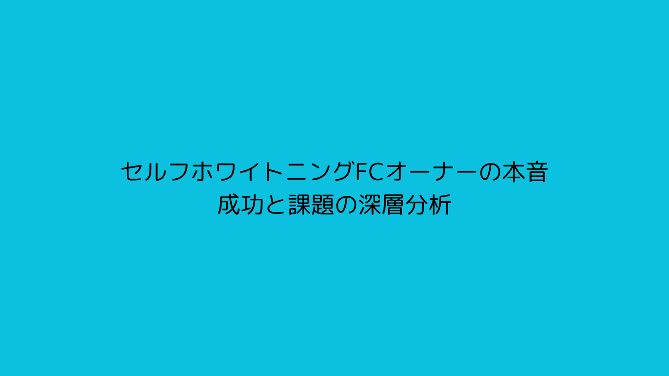 セルフホワイトニングFC事業で成功を収めるためには、前述の課題とリスクを認識した上で、戦略的なアプローチと継続的な努力が不可欠である。
